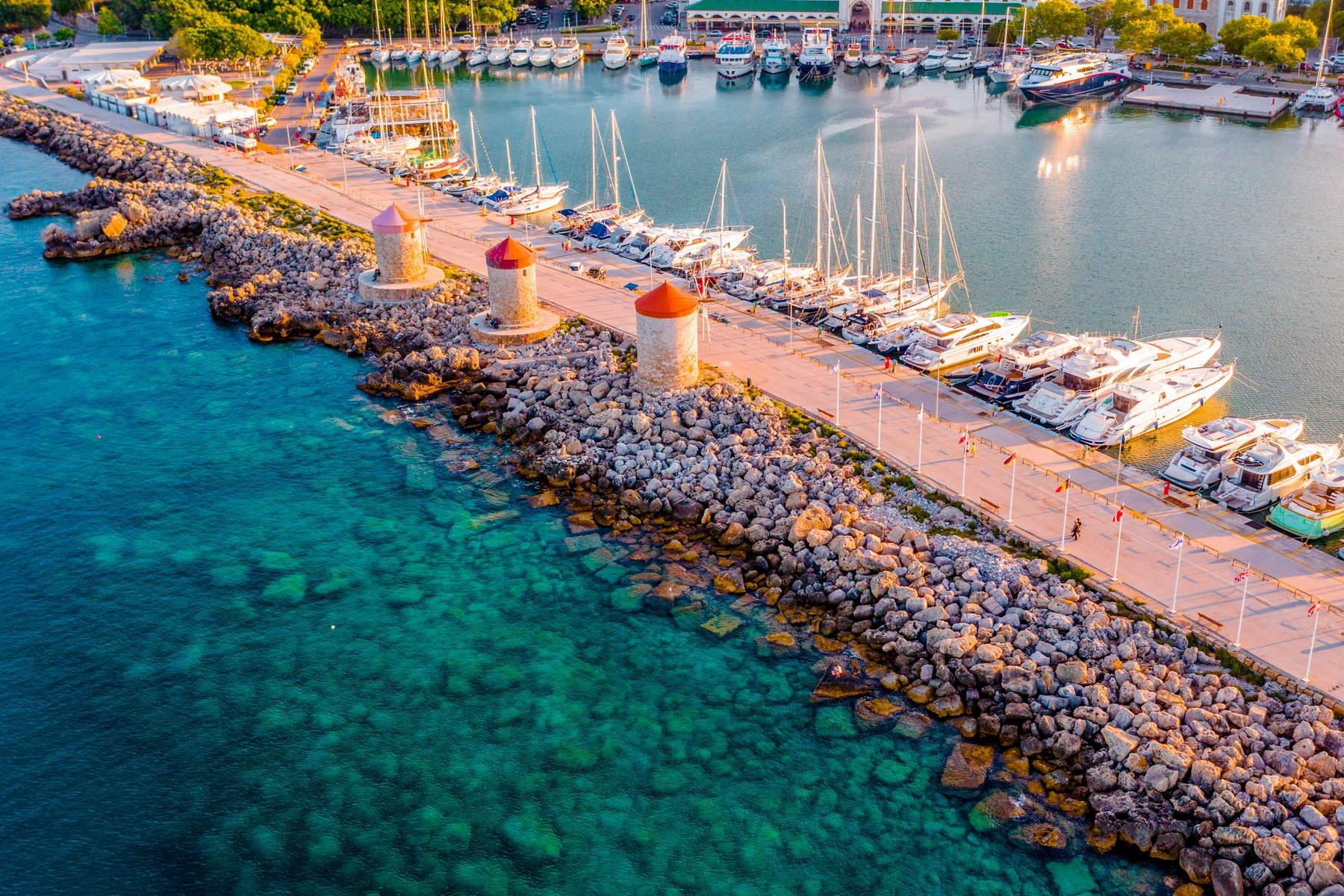 Departing in the early evening from Rhodes Town, this romantic sunset cruise follows the historic coastline as day gently melts into night. As we glide past the harbor and along the shores of the Old Town, the warm glow of the setting sun illuminates ancient walls, domes, and minarets, creating a truly magical atmosphere.