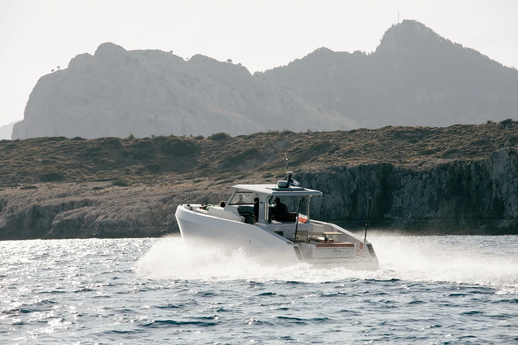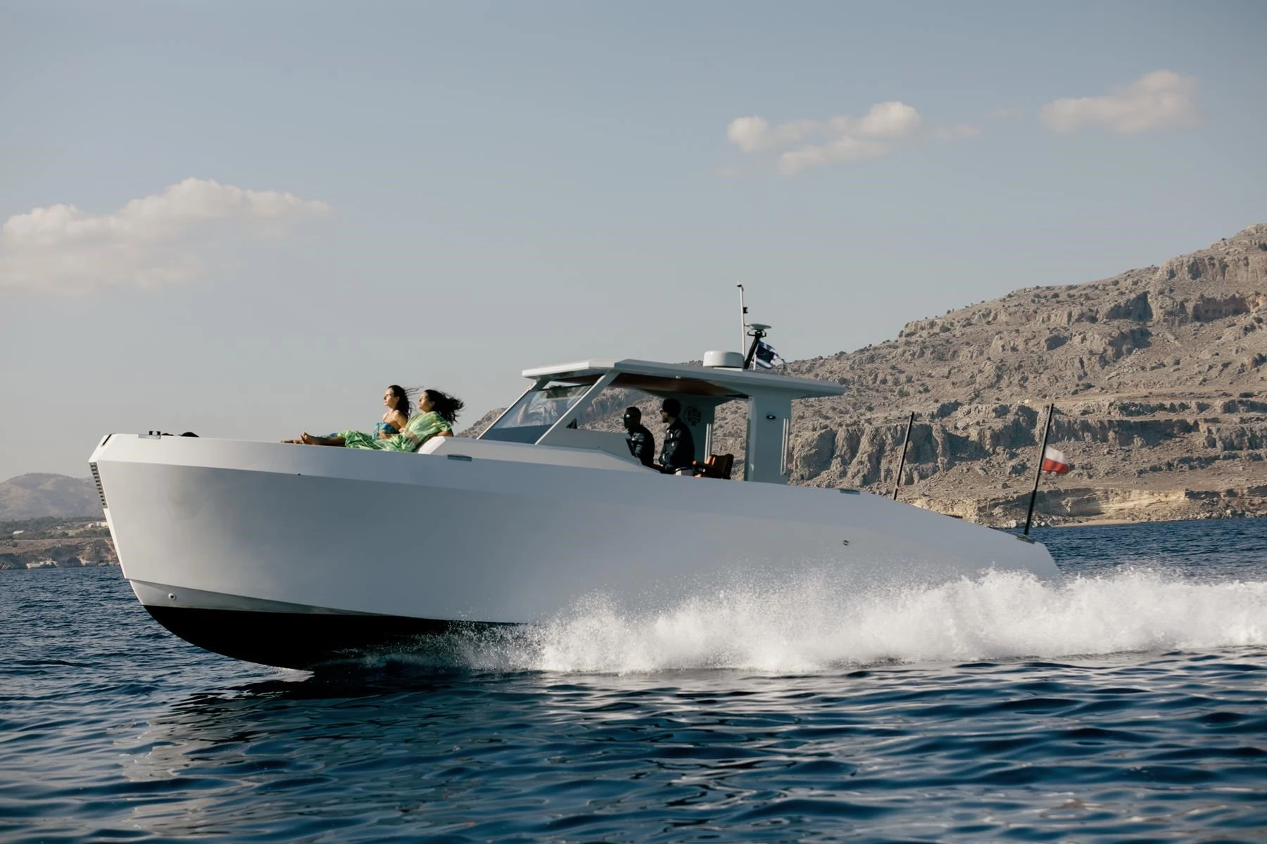 Cruising comfortably at 28 knots and capable of reaching over 34 knots, Alena is ideal for private and semi-private day charters to Rhode's most beautiful destinations or full-day escapes to Symi Island.
