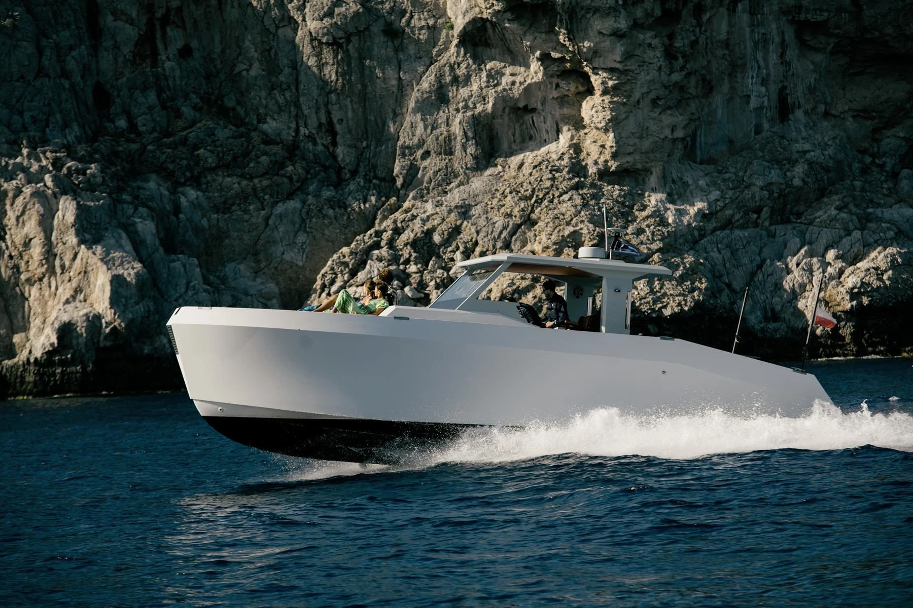 Sleek, powerful and built for luxury, Alena is a stunning Mazu 42 that redefines modern yachting in the Aegean. With a carbon-reinforced hull and twin Volvo Penta IPS engines, she combines speed and stability for a smooth, exhilarating cruise.